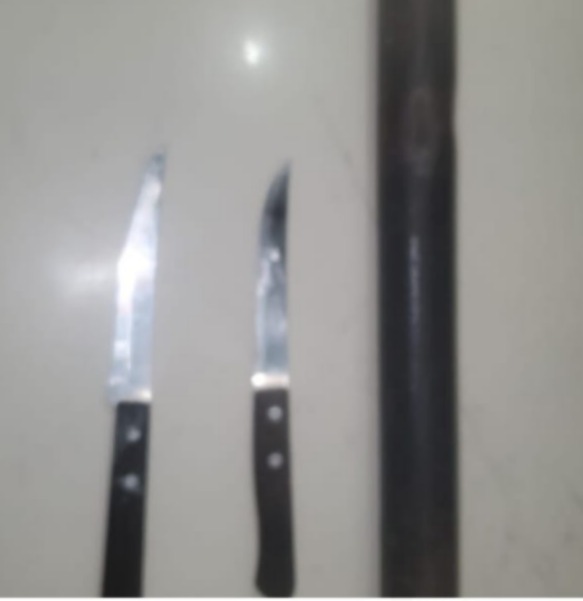 Personal de Policía Local detuvo en calle Teherán al 300, barrio Santa Rosa, a un menor de 16 años que amenazó de muerte a una mujer de 49 años, con un cuchillo tipo serrucho con mango plástico color negro.